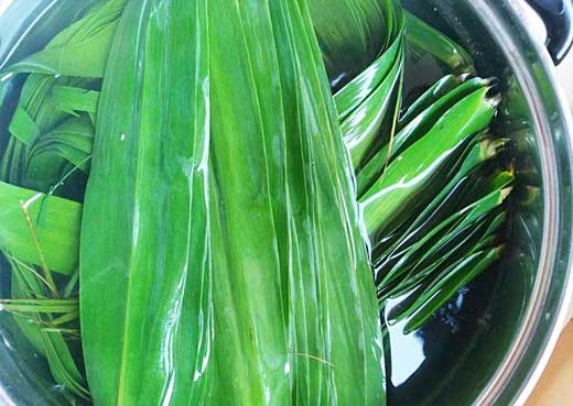 煮粽葉時(shí)可加入少量食用油,粽葉有一層油包出來的粽子不會(huì)粘在粽葉上。