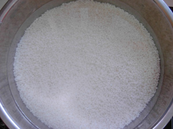 糯米洗凈泡水兩小時(shí)后瀝干水分。