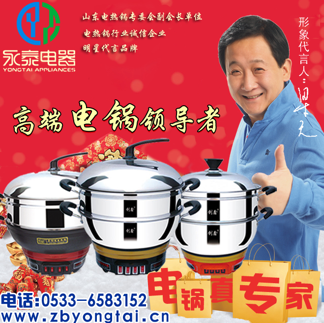 淄博周村永泰電器廠是一家專(zhuān)業(yè)生產(chǎn)多功能電熱鍋,鑄鐵電熱鍋,不銹鋼電水壺,電煎鍋等的專(zhuān)業(yè)廠家。歷經(jīng)多年的發(fā)展,已發(fā)展成為國(guó)內(nèi)較有影響力的電熱鍋生產(chǎn)廠,本廠所生產(chǎn)的“創(chuàng)鑫”牌電熱鍋,以?xún)?yōu)質(zhì)的產(chǎn)品質(zhì)量,優(yōu)惠的價(jià)格已得到眾多消費(fèi)者的認(rèn)可,為進(jìn)一步拓展市場(chǎng),現(xiàn)面向全國(guó)誠(chéng)征代理商、經(jīng)銷(xiāo)商。