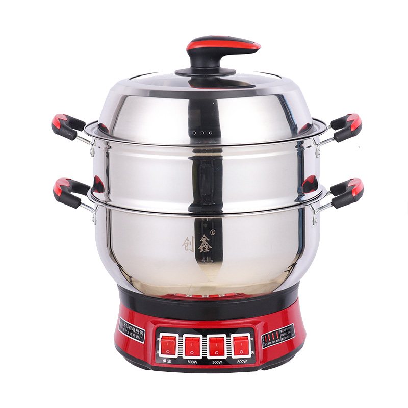 巧廚A款不不銹鋼電熱鍋 ,加厚鍋體,加厚加高蒸籠,加厚加高鍋蓋,紅色底座,美觀,實用,配置高。